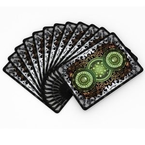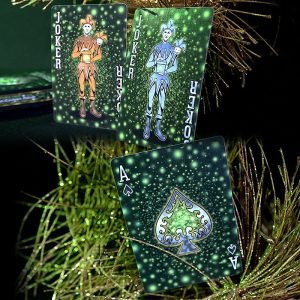 El diseño del estuche fue creado para que las luciérnagas realmente se destaquen. Se incorporó un fondo de tono negro y se usó con verdes y amarillos de neón para detectar el impresionante efecto de brillo. En el centro se incorporó la pala clásica con un acento plateado que combina muy bien con el aspecto general de la baraja.