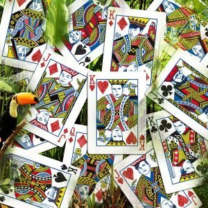 La baraja bellamente elaborada fue producida por la USPCC, por lo que ya puedes imaginar su gran calidad. Todos los reyes y jotas han sido modificados y personalizados… ¡intenta reconocerlos! El diseño de la baraja se realizó casi en su totalidad a mano.
