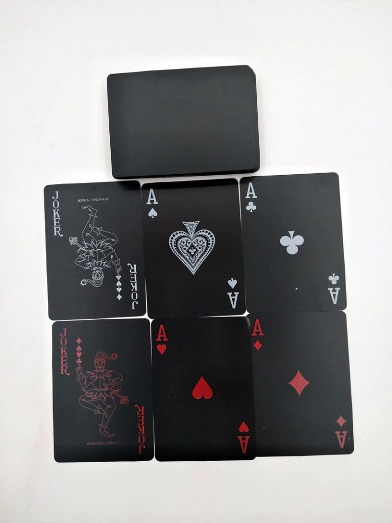 Como ves, hablamos de una baraja de póker, la cual incluye por supuesto todas las cartas más dos jokers. Todas las cartas están fabricadas en PVC, lo que las hace totalmente impermeables, tanto para las bebidas que se caen, como para que las uses en verano en la piscina, o como si te quieres ir a jugar al aire libre en medio de una tormenta (cosa que no recomiendo pero oye, ahí está la opción).
