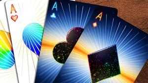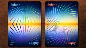 La baraja Prism Dusk es una hermosa y colorida creación, con tinta UV brillante en las caras de las cartas