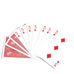 Cartas del mismo valor y palo, se irán transformando en otras cartas, girando incomprensiblemente a voluntad del mago entre dorsos y caras. Como colofón final, se cambiarán todos los dorsos de rojo a diferentes colores.