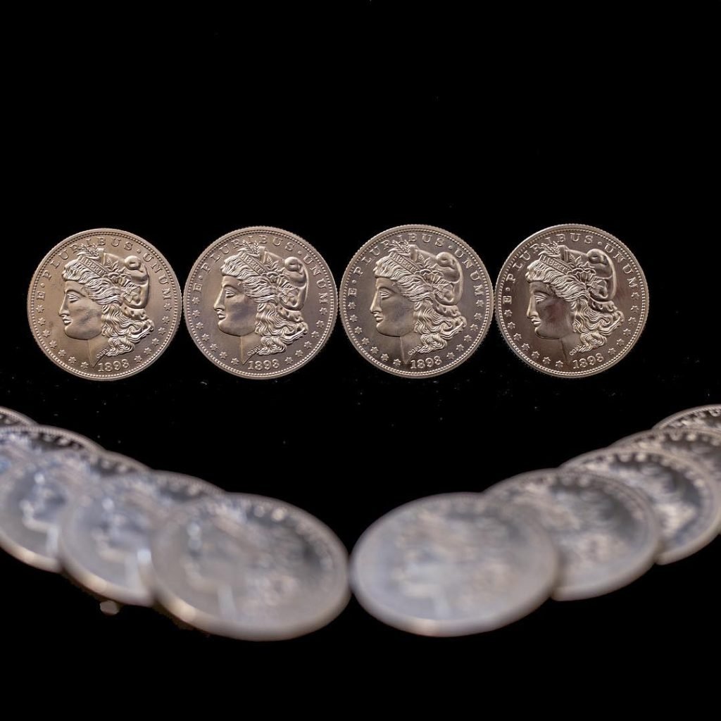 - 3 cascarillas nido de 1 Dólar Morgan Plata cada una.