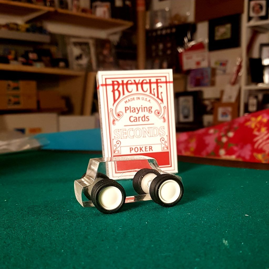 Una carta elegida libremente y perdida en la baraja será encontrada por un pequeño cochecito controlado por un espectador.
