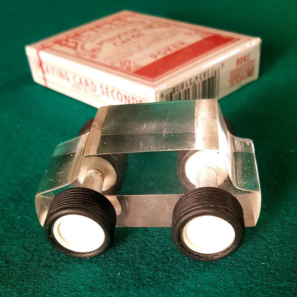 Una carta es elegida por un espectador y esta se pierde en la baraja. El ilusionista presenta un cochecito que será el protagonista del acto. El cochecito localizará la carta escogida deteniéndose justo encima de ella, siendo este manipulado por un espectador. Podrás ver como Juan Tamariz realiza el efecto en el video que os adjuntamos en la publicación.