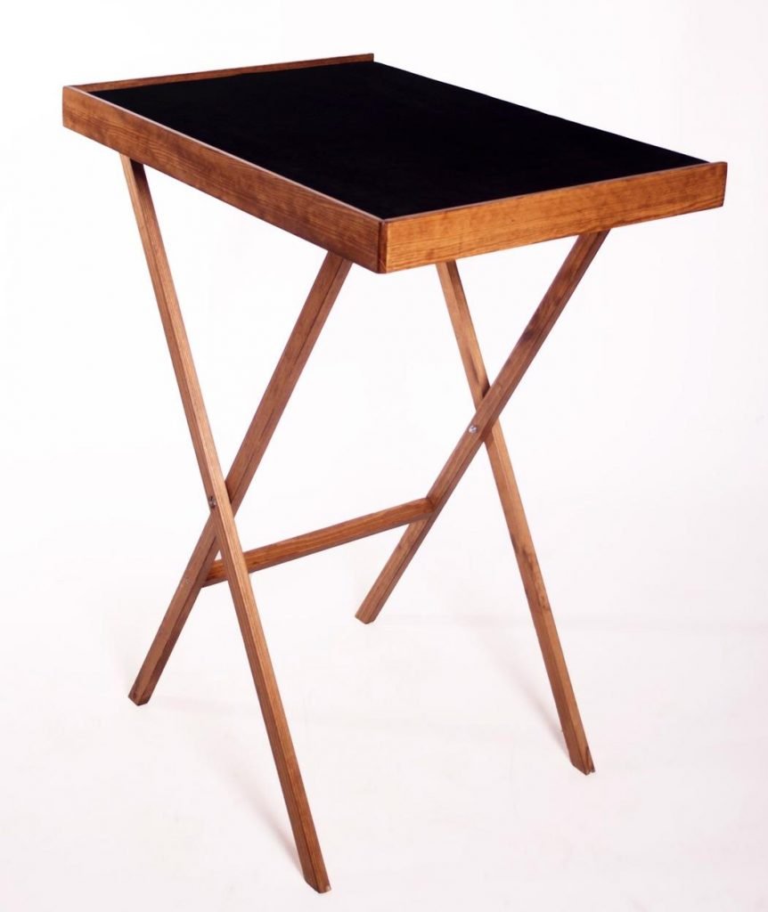 Plegable, toda de madera de buena calidad, resistente y muy estable.