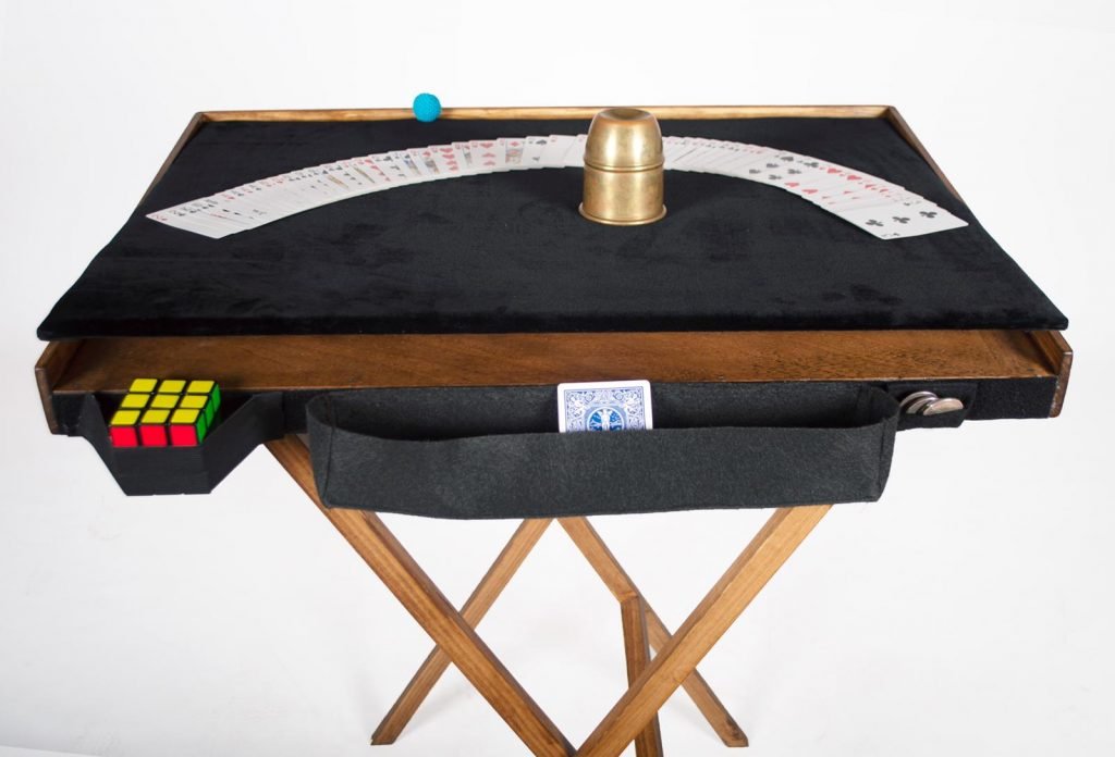 Tiene un borde por todo su perímetro para evitar que se caigan los objetos mágicos.
