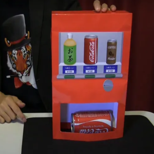 Monta la máquina expendedora plegada, mete dinero en ella y pulsa el botón… la bebida sale con un fuerte sonido.